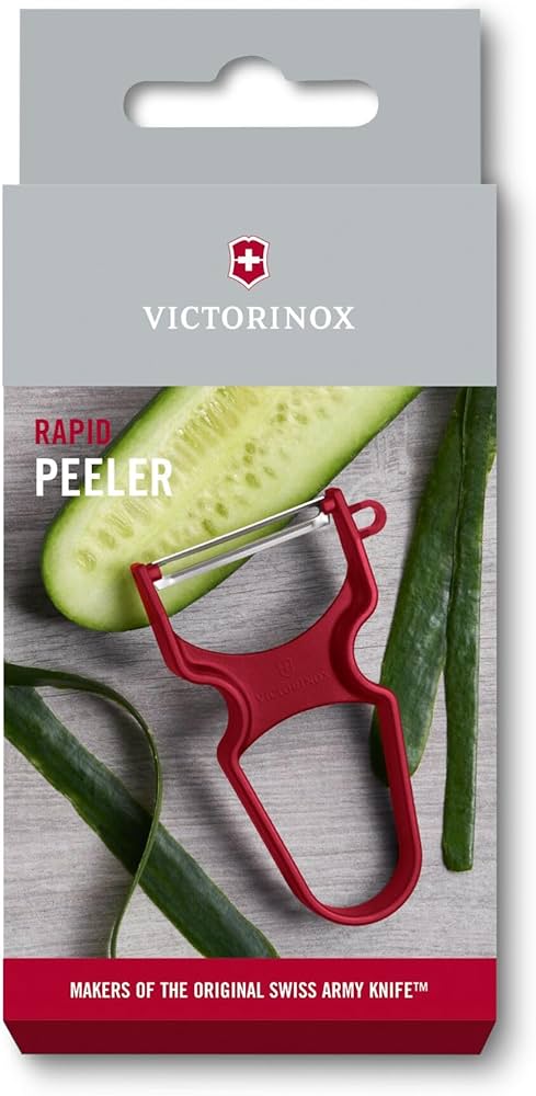 Victorinox Rapid Peeler 6.0930.1 je izjemno oster švicarski lupilec z gibljivim ravnim rezilom, zasnovan za preprosto lupljenje sadja in zelenjave. Njegova ergonomska oblika in lahkotna konstrukcija omogočata udobno in učinkovito delo, tudi pri daljši uporabi.